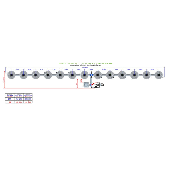 V-SYSTEM 13 Pot 1 Row Middle Header